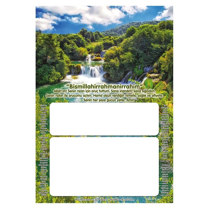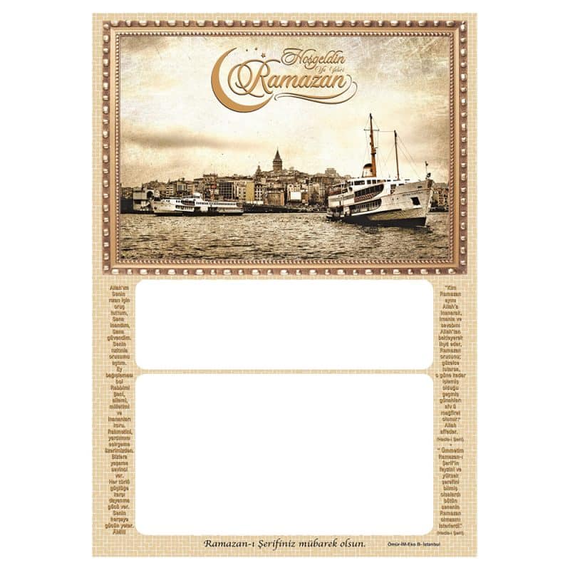 imsakiye Adet Fiyatıdır. Minimum sipariş miktarı 100'dür. Baskı renk başına 400 TL olarak eklenir. 25 x 35 CM 90 gr Kuşe Kağıt