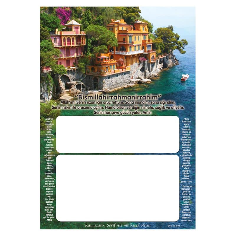 imsakiye Adet Fiyatıdır. Minimum sipariş miktarı 100'dür. Baskı renk başına 400 TL olarak eklenir. 25 x 35 CM 90 gr Kuşe Kağıt